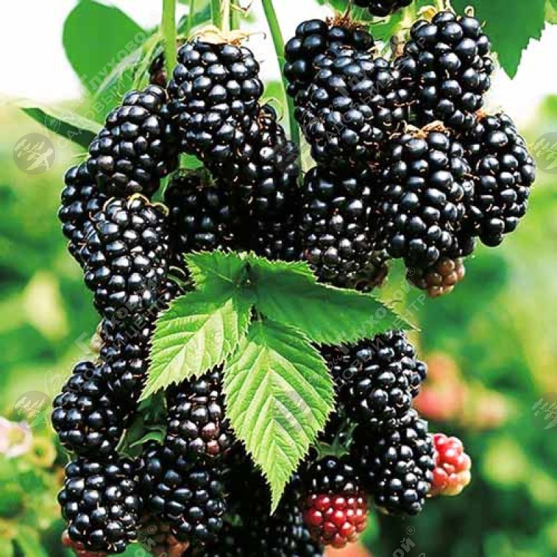 Плоды крупные, массой до 3 г. По мере созревания меняют окрас с зеленого до малинового и черного цвета. Ягоды сочные, плотные, на вкус сладкие без привычной для культуры горчинки.Цветет ежевика на однолетних побегах. Вкусные сочные ягодки созревают ближе к концу лета. Один куст за сезон дает до 1,5 кг отборных душистых ягод.