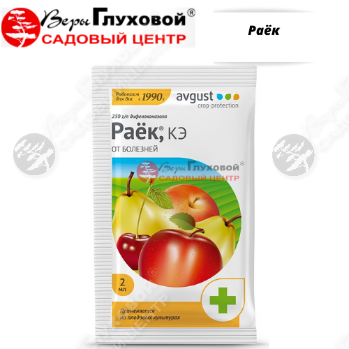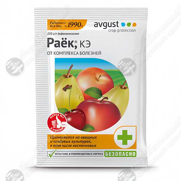 Препарат предназначен для защиты яблони, груши, сахарной и кормовой свеклы, картофеля и томатов от комплекса болезней. Действующее вещество: дифеноконазол, 250 г/л. Производится в виде концентрата эмульсии. Системный фунгицид, имеющий как лечебный, так и профилактический эффект. Используется для защиты плодовых культур от мучнистой росы, парши, курчавости листьев, коккомикоза, клястероспориоза. Может использоваться для борьбы с фитофторозом и альтернариозом на картофеле и томатах. Применяется также при борьбе с мучнистой росой. Быстро проникает в ткани растений и не смывается дождем уже через 2 часа после опрыскивания. Защищает листья и плоды. Обрабатывают культуры путем опрыскивания. Максимальное количество обработок для овощных культур - две, для плодовых – три-четыре. Скорость воздействия: 2 часа после обработки. Период защитного действия составляет около 7–10 дней, Не фитотоксичен. Класс опасности: 3 (умеренно опасное вещество).